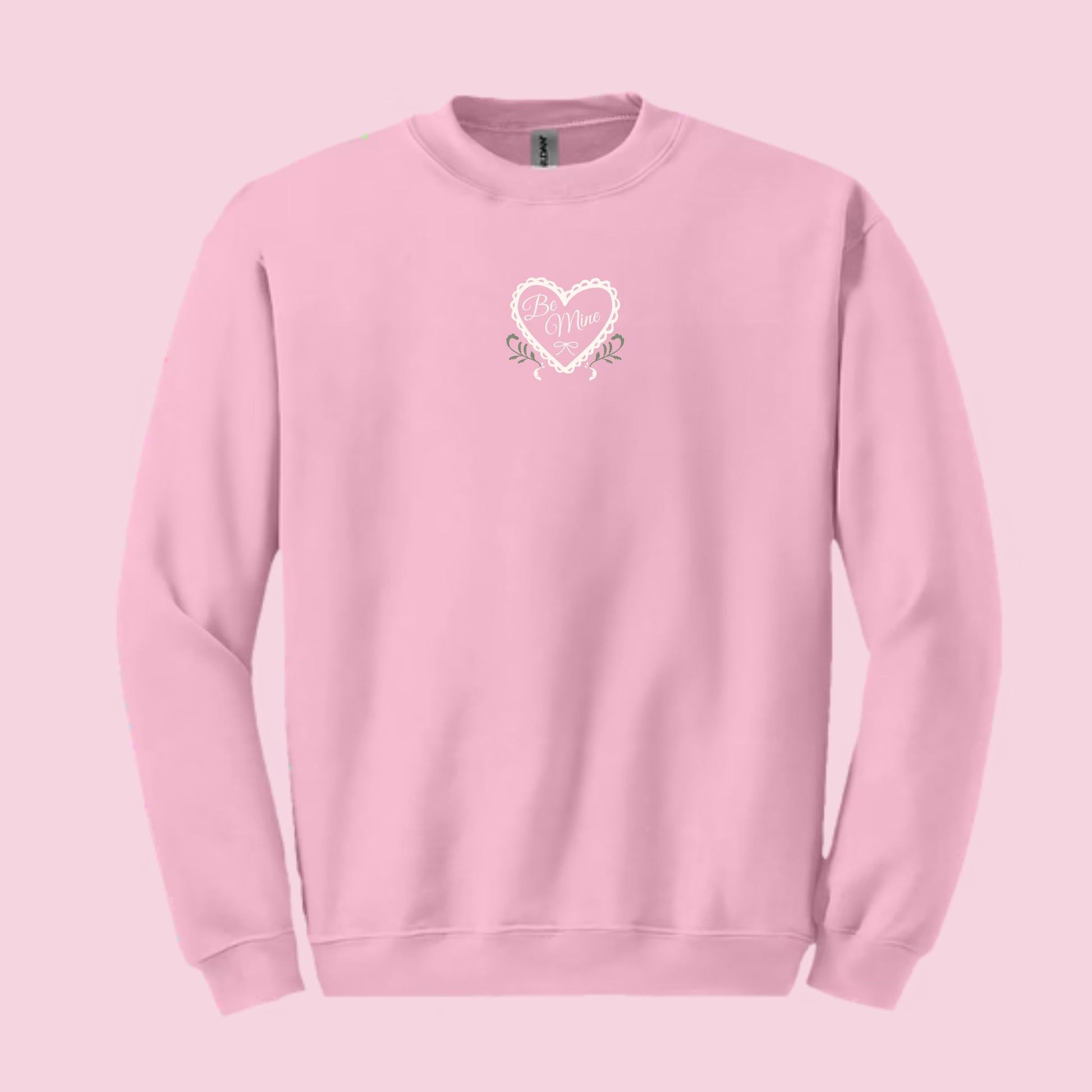 Sweet, romantic, and timeless — the Be Mine Sweatshirt is a love letter in sweatshirt form. Featuring a scalloped heart with delicate floral accents, elegant script lettering, and a tiny bow, this design captures the softness of handwritten notes and vintage Valentine’s charm.